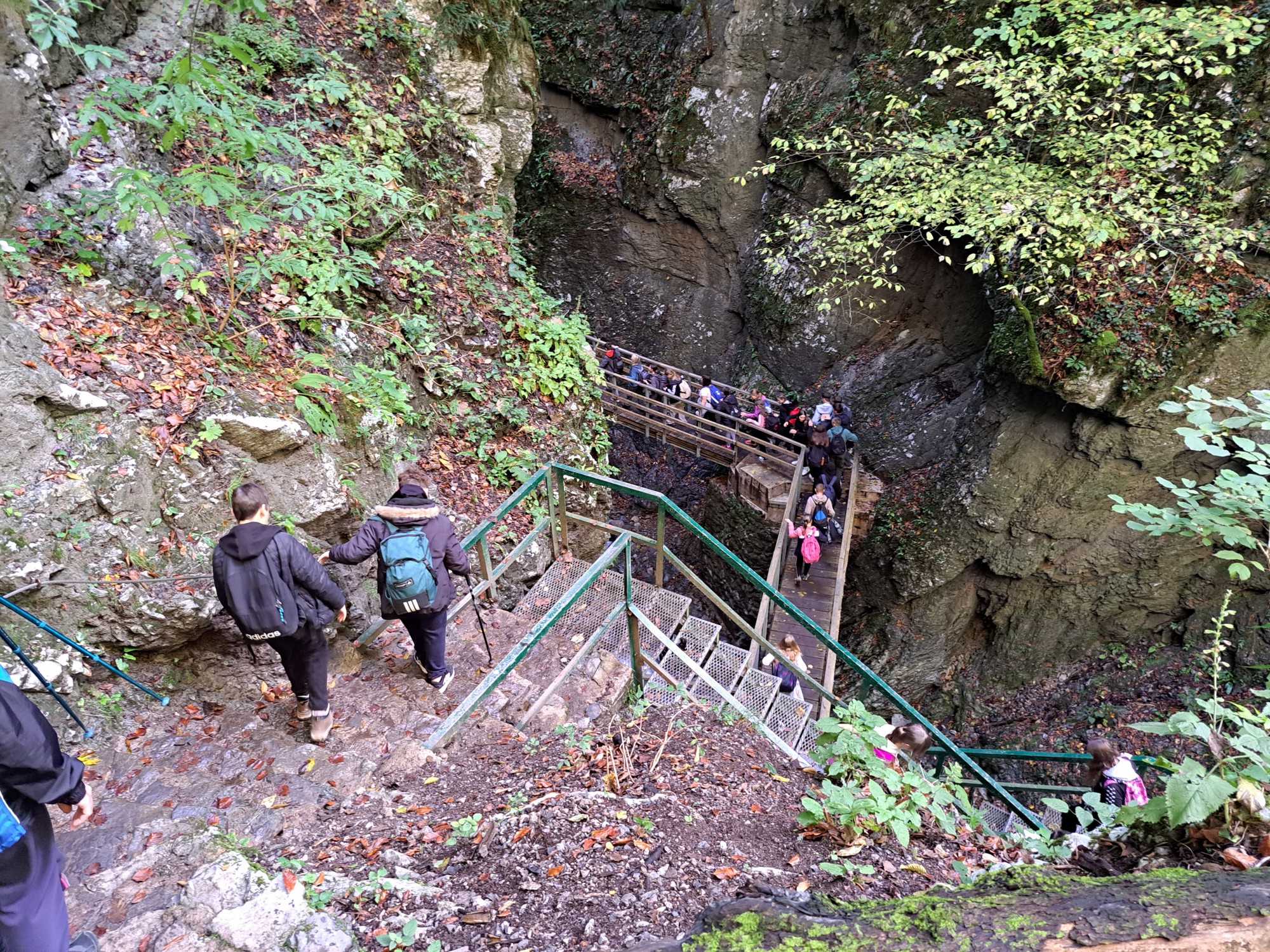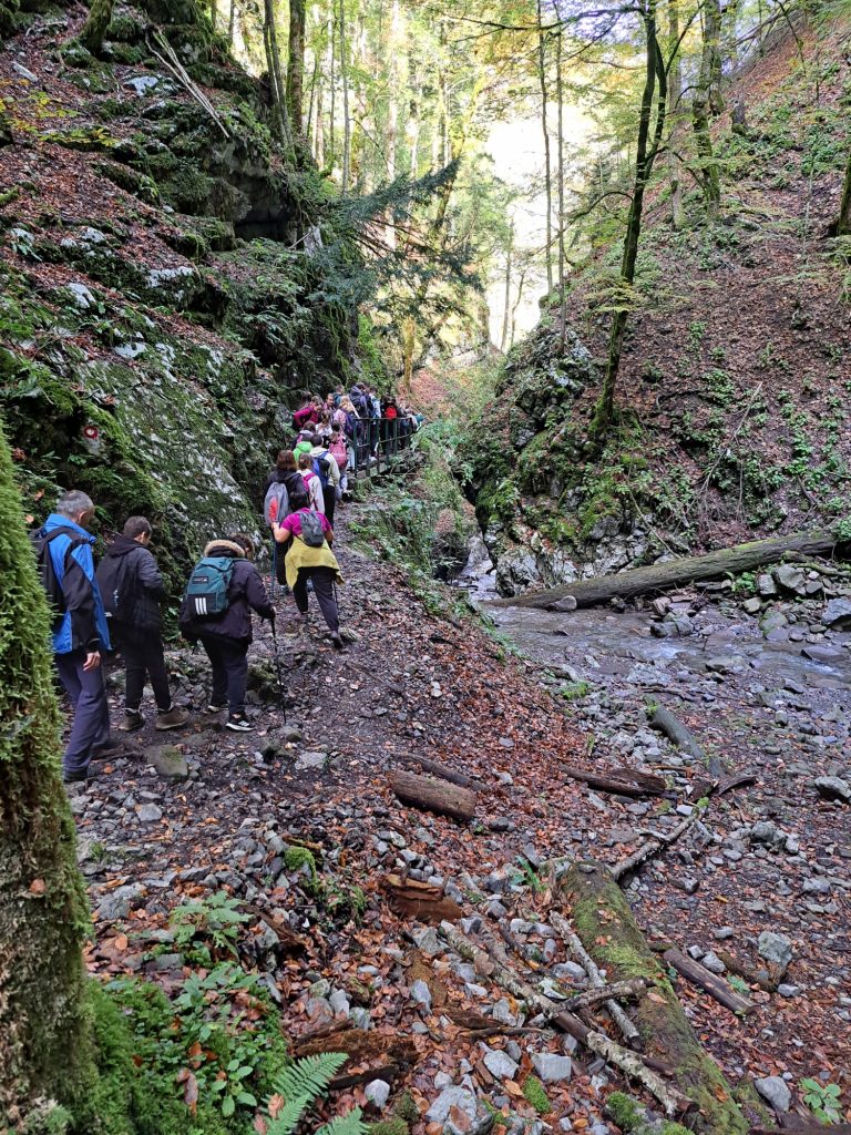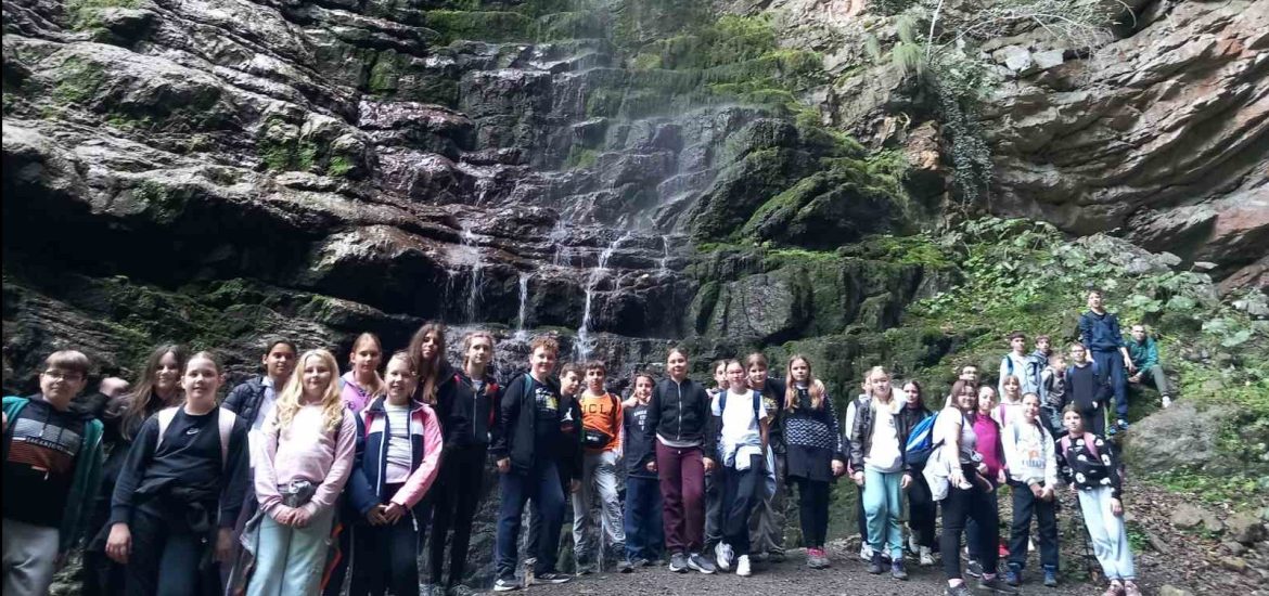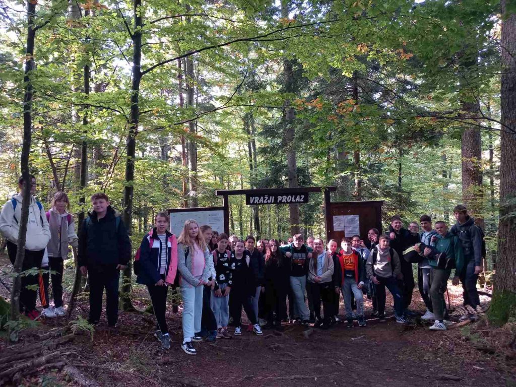 Po dolasku u mjesto Skrad, spustili smo se planinarskom stazom prema kanjonu Vražji prolaz – jednom od najatraktivnijih prirodnih lokaliteta u Hrvatskoj. Uz stručno vodstvo vodiča Renata Raca, učenici su prošli kroz uski kanjon, uživajući u prirodnim ljepotama i učenju o geomorfološkim osobitostima tog kraja. Nakon prolaska kroz kanjon, stigli smo do planinarskog doma gdje je organiziran duži odmor i okrjepa. Slijedilo je kratko edukativno predavanje o povijesnoj hidroelektrani „Munjara“, koja je i danas u funkciji. Zatim krećemo prema Zelenom viru – 70 metara visokom slapu i špilji s izvorom po kojem je lokalitet dobio ime. Nastavljamo uspon poučnom botaničkom stazom, gdje imamo priliku upoznati raznolike biljne vrste karakteristične za gorski kraj. Na kraju staze čekao nas je autobus te povratak prema Rasinji.