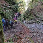 Dolaskom autobusom u Skrad, planinarenje smo započeli spuštanjem stazom koja vodi do kanjona nazvanog Vražji prolaz. Kanjon dug 800 metara, okružen visokim stijenama, uređen je za posjetitelje sa brojnim mostićima ispod kojih teče potok Jasle. Staza nas je dovela do špilje Muževa hiža u koju smo ušli uz pomoć svjetiljka na našim mobitelima. U toj špilji se nalazi jezerce i tu je pronađena čovječja ribica, endemična i izrazito ugrožena vrsta. Nakon kratkog predavanja o špiljskim sustavima, nastavili smo put do planinarskog doma Zeleni vir. Nakon dužeg odmora, krenuli smo prema potoku Curak i staroj hidroelektrani Munjari iz 1922. godine za koju smo saznali da je još uvijek u funkciji. U nastavku planinarenja najviše nas se dojmio 70m visok slap nakon kojeg je uslijedio uspon do Skrada i povratak kućama.