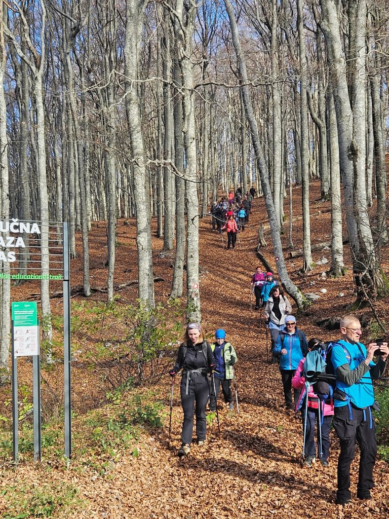 Negdje na pola našeh pohoda stigli smo do raskrižja, gdje smo nakon kratkog odmora odlučili put do Vojaka nastaviti poučnom stazom Plas. Općenito, uzduž cijelog puta su nas dočekale table s kratkim opisima flore i faune Učke. Kratko, jasno i vrlo poučno. Osim tabela, mimoišli smo se nekoliko puta i s drugim planinarima koji su ili bili sami ili u društvu obitelji i svojih pasa. Koliko je subota bila aktivna, govori i to da su pokraj nas prošli i bicklisti te trkaći.
